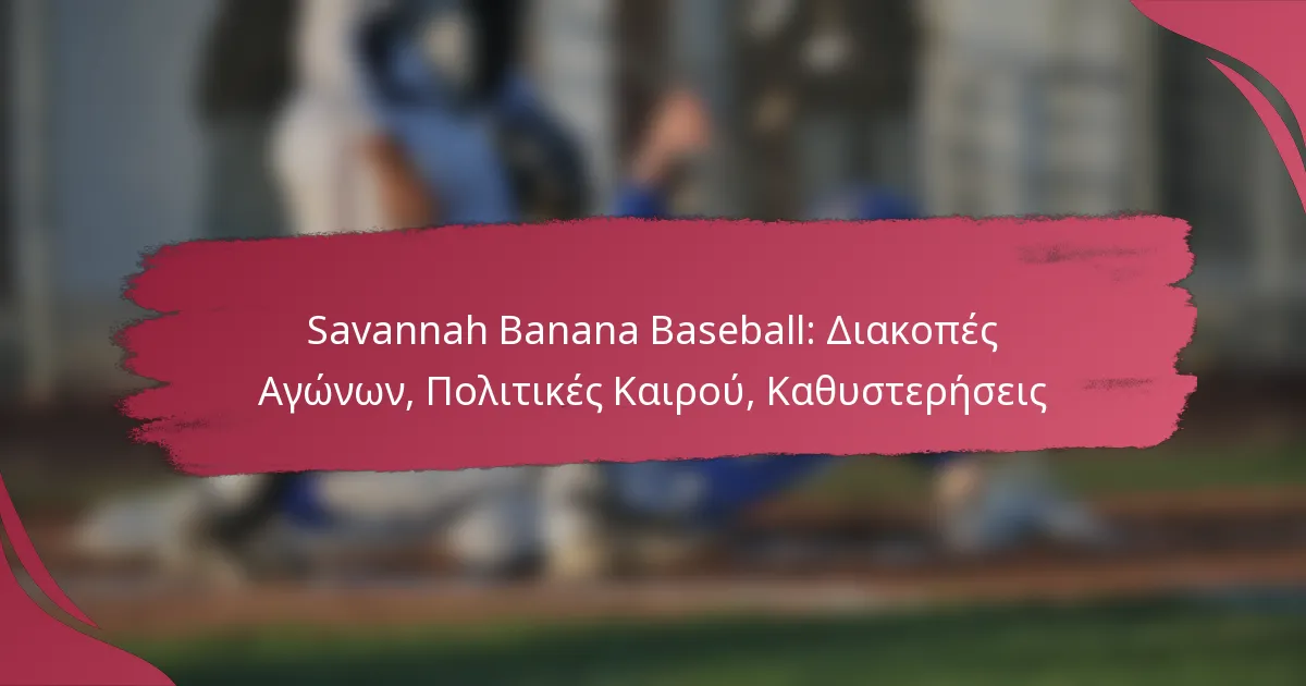 Οι καθυστερήσεις κατά τη διάρκεια των αγώνων των Savannah Banana μπορεί να προκύψουν λόγω διαφόρων παραγόντων, κυρίως καιρικών συνθηκών και διακοπών παιχνιδιού. Αυτές οι καθυστερήσεις μπορεί να επηρεάσουν τη συνολική εμπειρία για τους φιλάθλους, απαιτώντας σαφή επικοινωνία και αποτελεσματικές στρατηγικές διαχείρισης.