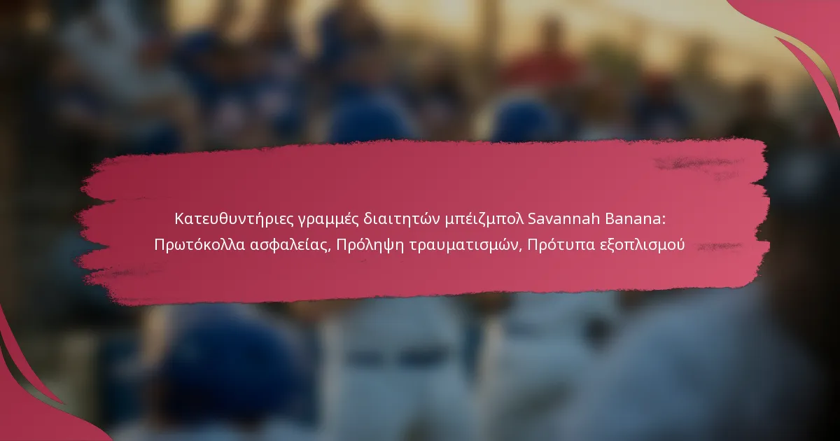 Οι κατευθυντήριες γραμμές για τους διαιτητές της Savannah Banana τονίζουν τη σημασία των πρωτοκόλλων ασφαλείας για τη δημιουργία ενός ασφαλούς περιβάλλοντος για όλους τους συμμετέχοντες στο παιχνίδι. Αυτές οι κατευθυντήριες γραμμές καλύπτουν βασικούς τομείς όπως οι διαδικασίες έκτακτης ανάγκης, στρατηγικές πρόληψης τραυματισμών και αυστηρές προδιαγραφές εξοπλισμού για να διασφαλιστεί η αποτελεσματική διαιτησία και να ελαχιστοποιηθούν οι κίνδυνοι στο γήπεδο.
